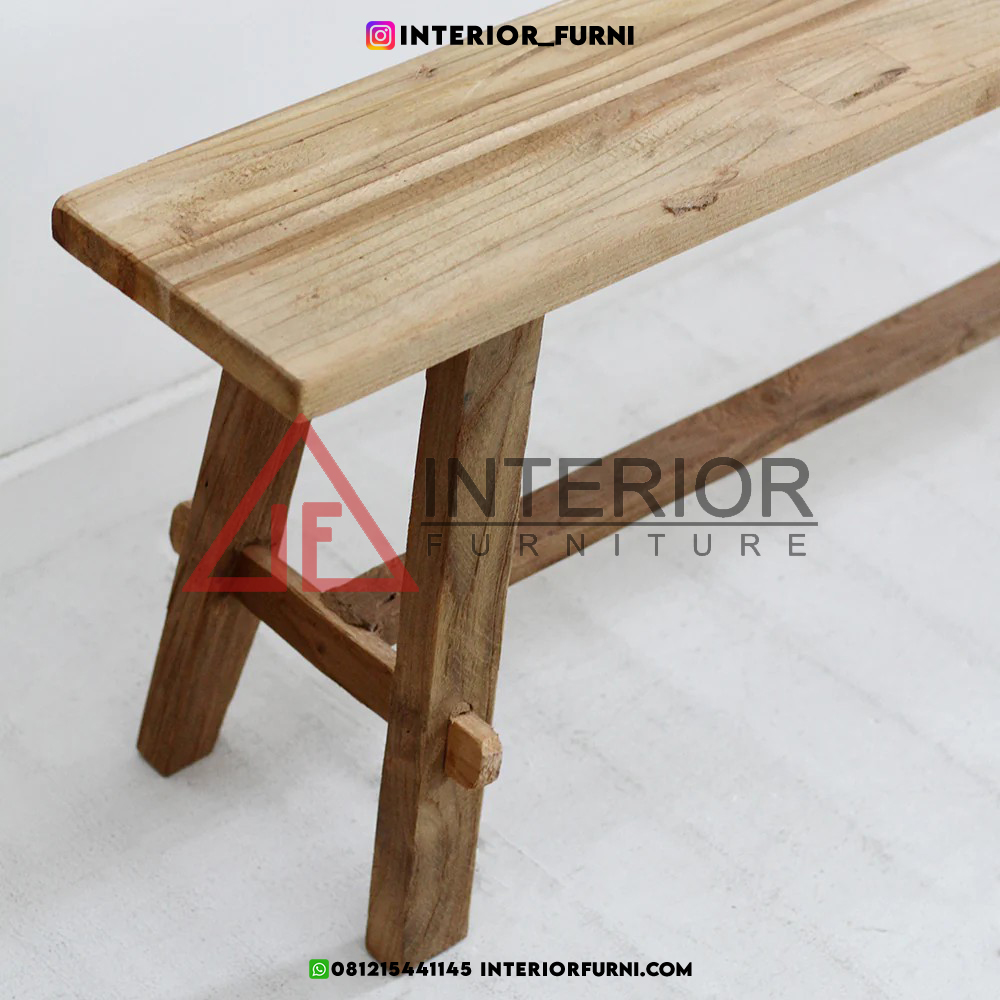 Dengan desain yang simpel dan unik,bangku ini memiliki nilai estetik tersendiri, kemudian dengan menggunakan bahan baku berupa full kayu solid membuat bench ini memiliki daya tarik tambahan dan tentunya memiliki kekuatan yang tidak diragukan lagi, dengan kata lain furniture memiliki kualitas yang sangat baik. Tentunya bangku ini dapat bertahan dalam waktu yang lama.