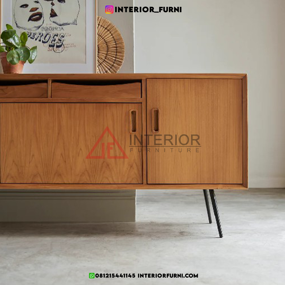 Bufet retro minimalis modern menggunakan bahan baku Kayu Jati utuh (Teak Wood) dan ditambah dengan konstruksi/purus. Produk-produk dari Interior Furni dekerjakan oleh para profesional dibidang furniture dari Jepara. Dikerjakan dengan teliti dan cermat sehingga furniture ini menjadi produk yang kokoh, kuat dan memiliki fungsi guna.