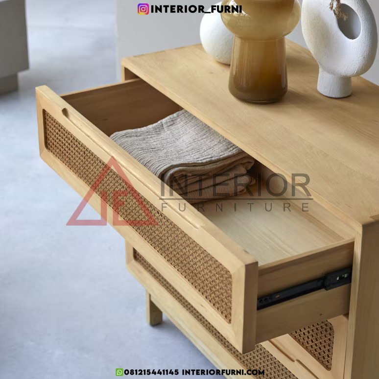 Finishing Produk Buffet Laci Rotan Minimalis Kayu Jati Solid