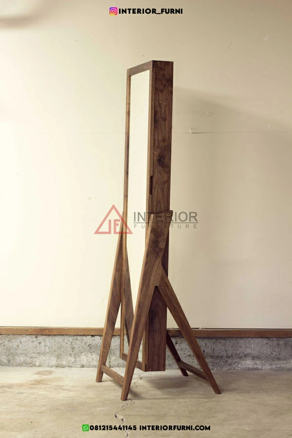 Dengan desain yang simpel dan unik, cermin ini memiliki nilai estetik tersendiri, kemudian dengan menggunakan bahan baku berupa full kayu solid membuat cermin ini memiliki daya tarik tambahan dan tentunya memiliki kekuatan yang tidak diragukan lagi, dengan kata lain furniture memiliki kualitas yang sangat baik. Tentunya standing mirror ini dapat bertahan dalam waktu yang lama.