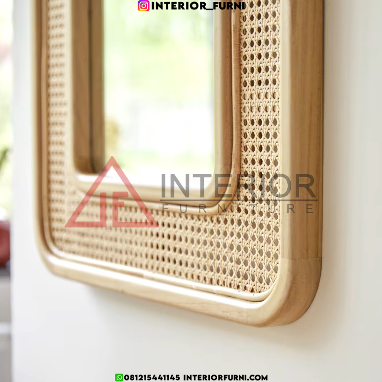 Cermin rotan minimalis ini menggunakan bahan baku Kayu Jati utuh (Teak Wood) dan ditambah dengan konstruksi/purus. Produk-produk dari Interior Furni dekerjakan oleh para profesional dibidang furniture dari Jepara. Dikerjakan dengan teliti dan cermat sehingga furniture ini menjadi produk yang kokoh, kuat dan memiliki fungsi guna.