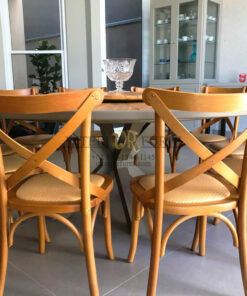 Dengan desain yang simpel dan unik, Kursi makan ini memiliki nilai estetik tersendiri, kemudian dengan menggunakan bahan baku berupa full kayu solid membuat kursi makan ini memiliki daya tarik tambahan dan tentunya memiliki kekuatan yang tidak diragukan lagi, dengan kata lain furniture memiliki kualitas yang sangat baik. Tentunya kursi makan ini dapat bertahan dalam waktu yang lama.