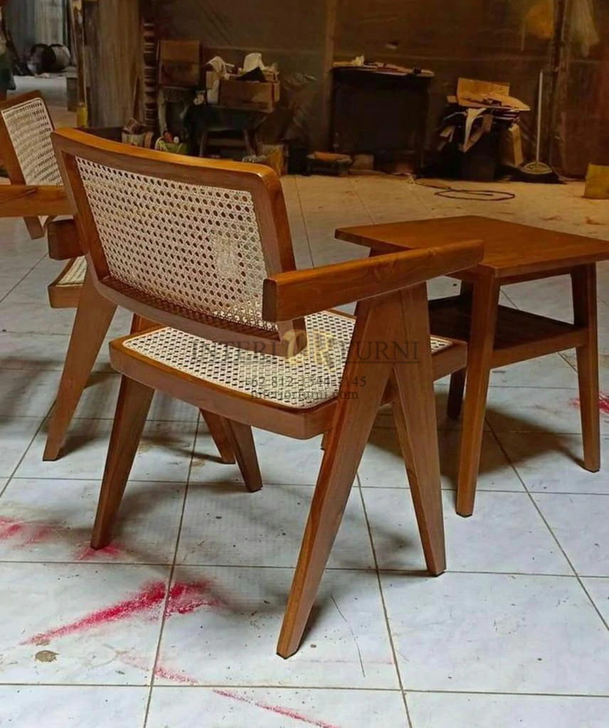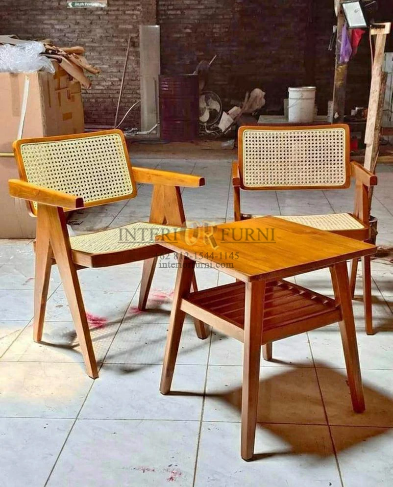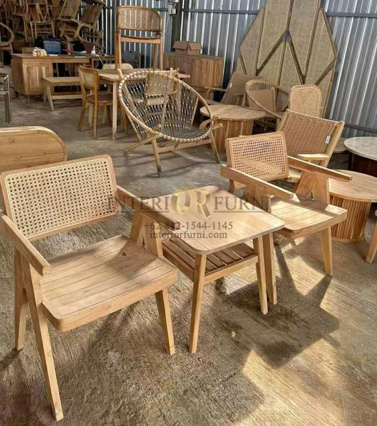 Finishing Produk Kursi Cafe Rotan Minimalis Modern Kayu Jati