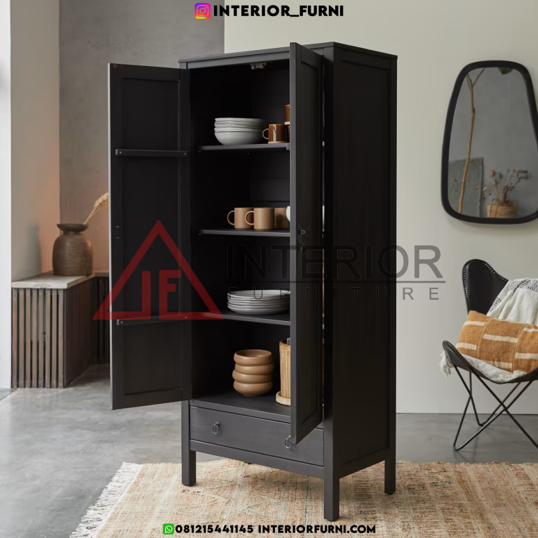 Dengan desain yang simpel dan unik, lemari pakaian ini memiliki nilai estetik tersendiri, kemudian dengan menggunakan bahan baku berupa full kayu solid membuat lemari bufet ini memiliki daya tarik tambahan dan tentunya memiliki kekuatan yang tidak diragukan lagi, dengan kata lain furniture memiliki kualitas yang sangat baik. Tentunya lemari pakaian ini dapat bertahan dalam waktu yang lama.