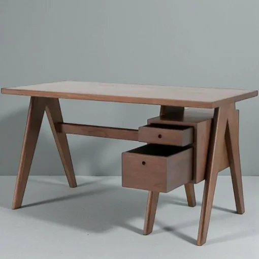 Dengan desain yang simpel dan unik, Meja kerja ini memiliki nilai estetik tersendiri, kemudian dengan menggunakan bahan baku berupa full kayu solid membuat meja kerja ini memiliki daya tarik tambahan dan tentunya memiliki kekuatan yang tidak diragukan lagi, dengan kata lain furniture memiliki kualitas yang sangat baik. Tentunya meja kerja ini dapat bertahan dalam waktu yang lama.