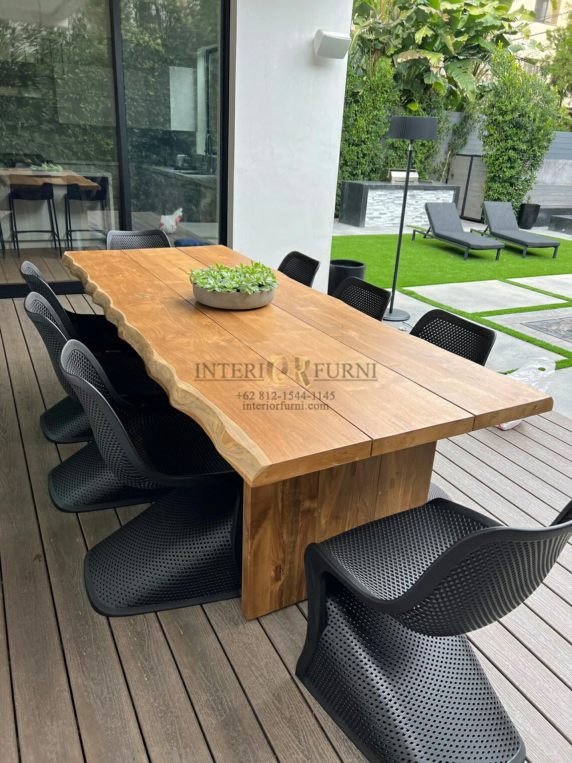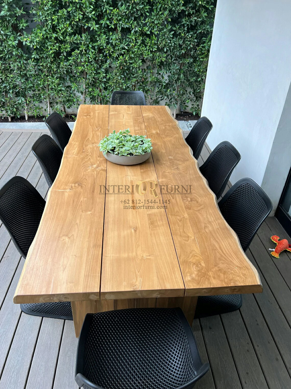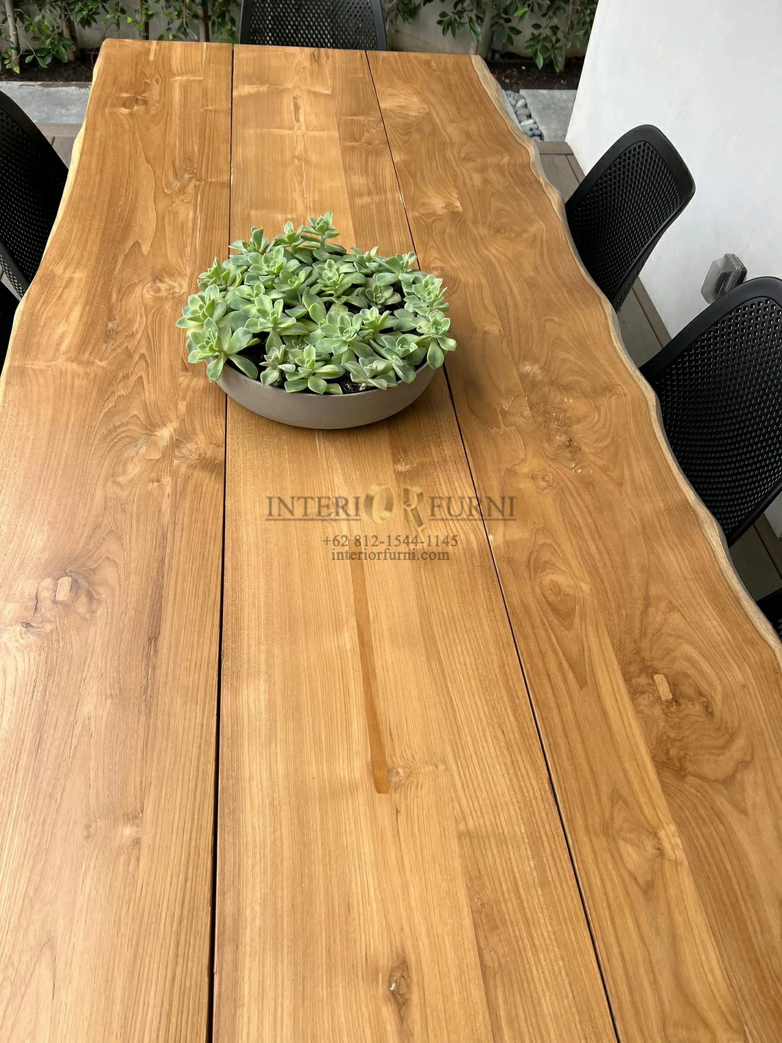 Meja makan kayu jati solid ini menggunakan bahan baku Kayu Jati utuh (Teak Wood) dan ditambah dengan konstruksi/purus. Produk-produk dari Interior Furni dekerjakan oleh para profesional dibidang furniture dari Jepara. Dikerjakan dengan teliti dan cermat sehingga furniture ini menjadi produk yang kokoh, kuat dan memiliki fungsi guna.