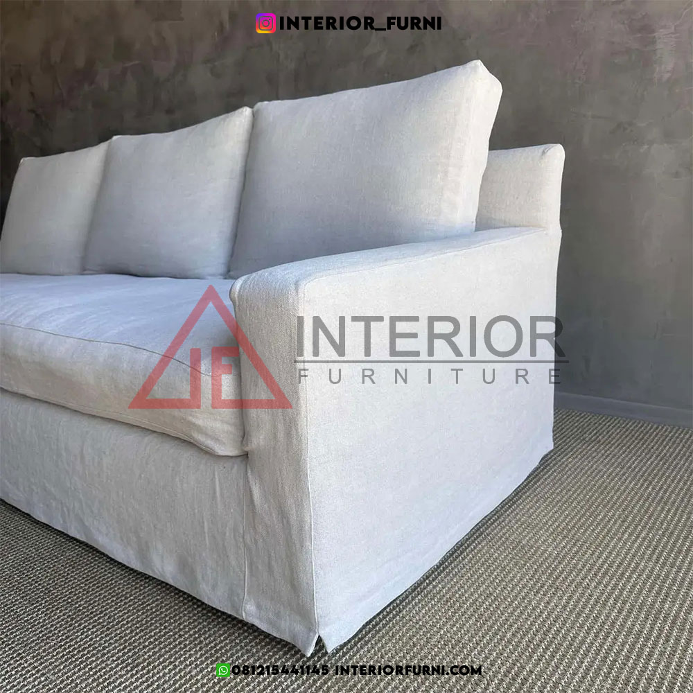 Sofa ini mengusung konsep less is more, dimana kenyamanan dan keindahan hadir melalui desain yang tidak berlebihan namun tetap memikat. Strukturnya kokoh dengan rangka kayu solid berkualitas, menjamin ketahanan jangka panjang tanpa mengorbankan estetika. Cover berbahan linen juga mudah dibersihkan dan memberikan nuansa alami yang hangat serta homey.