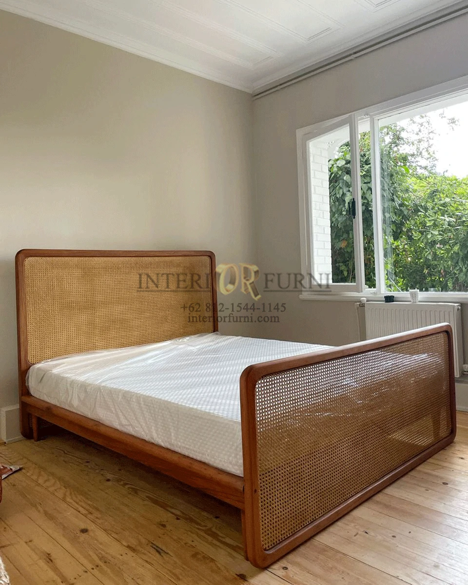 Tempat tidur rotan minimalis modern ini menggunakan bahan baku Kayu Jati solid (Teak Wood) dan ditambah dengan konstruksi/purus. Produk-produk dari Interior Furni dekerjakan oleh para profesional dibidang furniture dari Jepara. Dikerjakan dengan teliti dan cermat sehingga furniture ini menjadi produk yang kokoh, kuat dan memiliki fungsi guna.